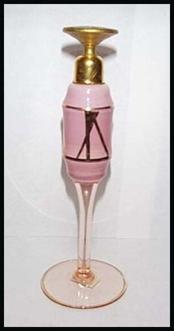 This PINK DeVilbiss perfumer measures is 7" tall. It has gold